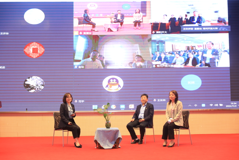 会上还进行了交流互动。来自武进开放大学副校长韩晓锋、溧阳开放大学副校长杨志新、常州开放大学信息中心主任袁彩哲、金坛开放大学智能制造系党支部宣传委员张杨齐、信息工程学院机电系副主任张林博士、信息工程学院学生代表刘伟韬等,围绕“凸显硬件保障方面领先优势”“促进省市县一体化转型战略举措”“数字赋能系统优势资源上台阶”“市县开放大学本土文化融入江苏开大文化”“数字化趋势下江苏开大未来作为”“个人发展规划融入国家发展战略”等话题进行提问,与主讲人进行了交流。现场气氛生动热烈。