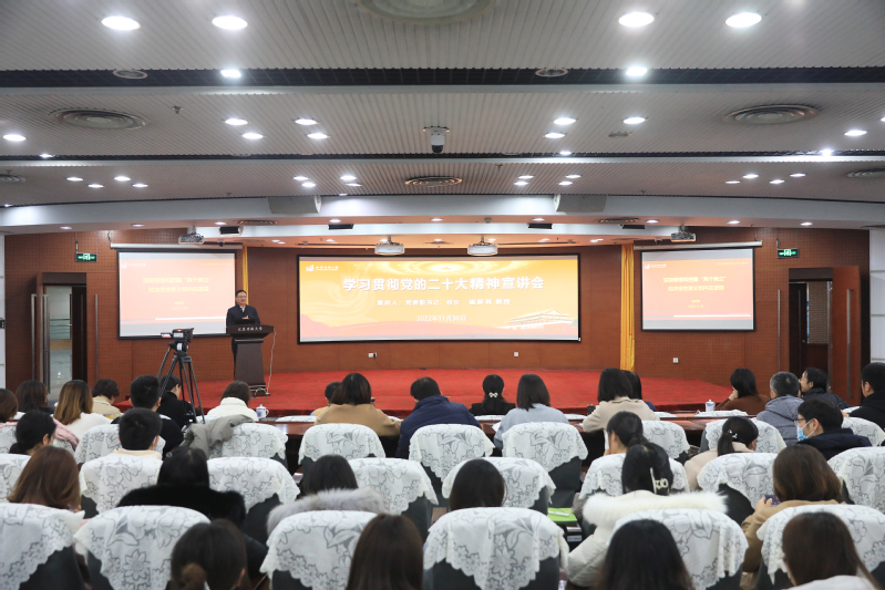 11月30日下午,校党委副书记、校长崔新有在定淮门校区2楼报告厅,面向马克思主义学院、乡村振兴学院、学校办公室、人事处、审计处、财务处等部门全体教职工,开展学习贯彻党的二十大精神专题宣讲。