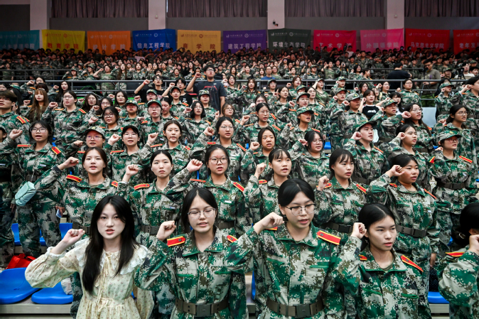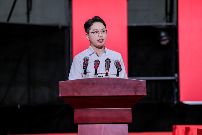 全体新生举起右臂庄严宣誓,以铿锵誓言许下青春承诺,誓词声浪响彻礼堂,将典礼氛围推向高潮。