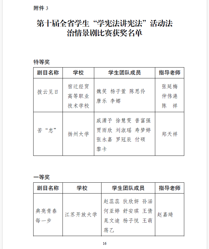 近日,由江苏省教育厅主办的第十届全省学生“学宪法讲宪法”活动法治情景剧比赛结果正式公布。作为全省范围内颇具影响力的学生法治教育赛事,该比赛旨在通过情景剧这一通俗易懂的形式,推动宪法知识进校园、进课堂,引导广大学生增强法治意识、提升法治素养,吸引了全省高校的积极参与。